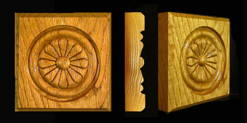 Daisy Embossed Beveled Rosette, 1-1/16″ x 4-1/2″ x 4-1/2″ – Red Oak
